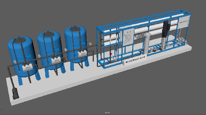 一級RO反滲透水處理設備3D模型圖