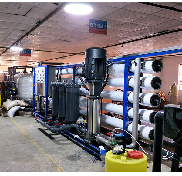 預處理系統一般包括原水泵、加藥裝置、石英砂過濾器、活性炭過濾器、精密過濾器等。其主要作用是降低原水的污染指數和余氯等其他雜質,達到反滲透的進水要求。預處理系統的設備配置應該根據原水的具體情況而定。